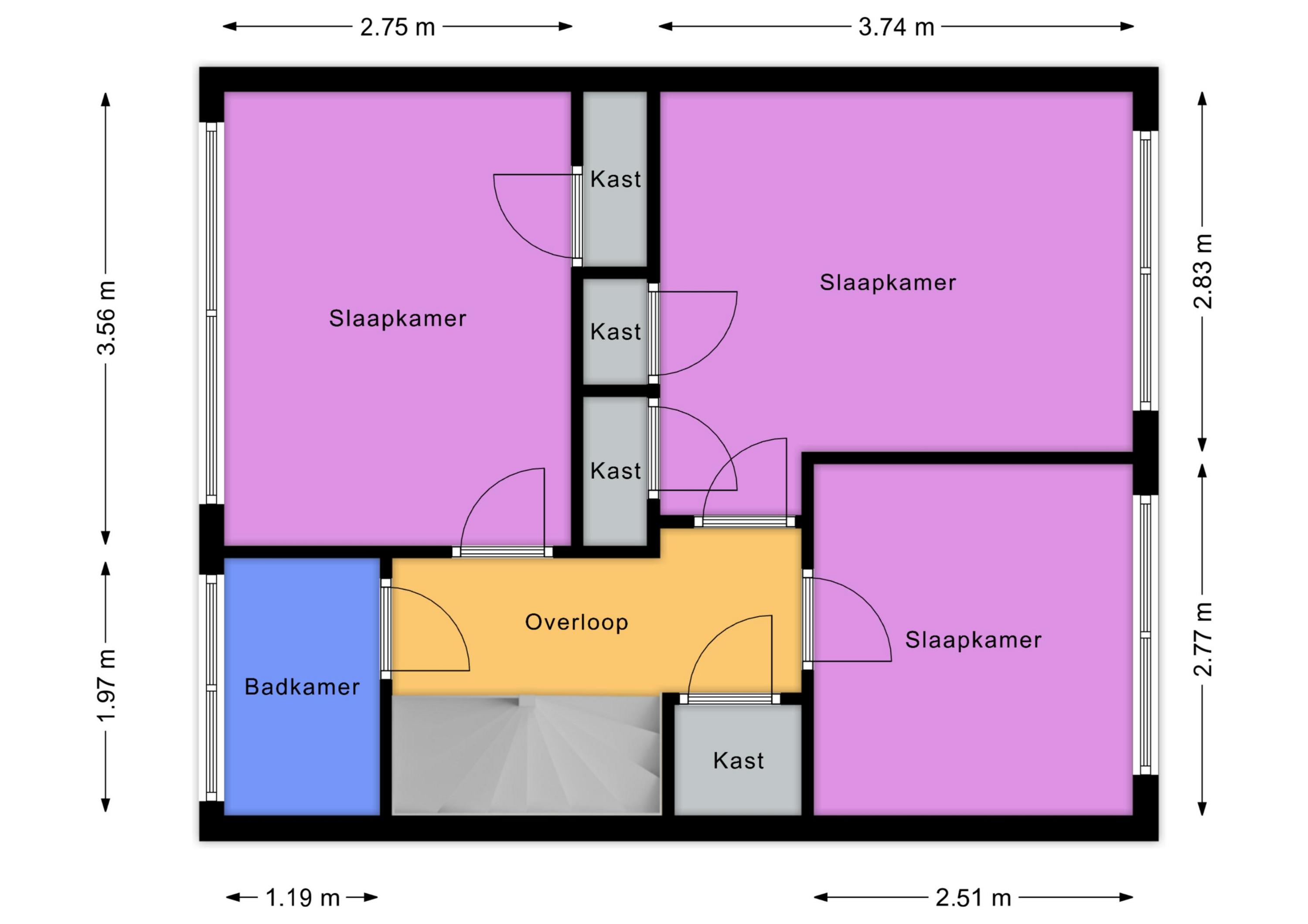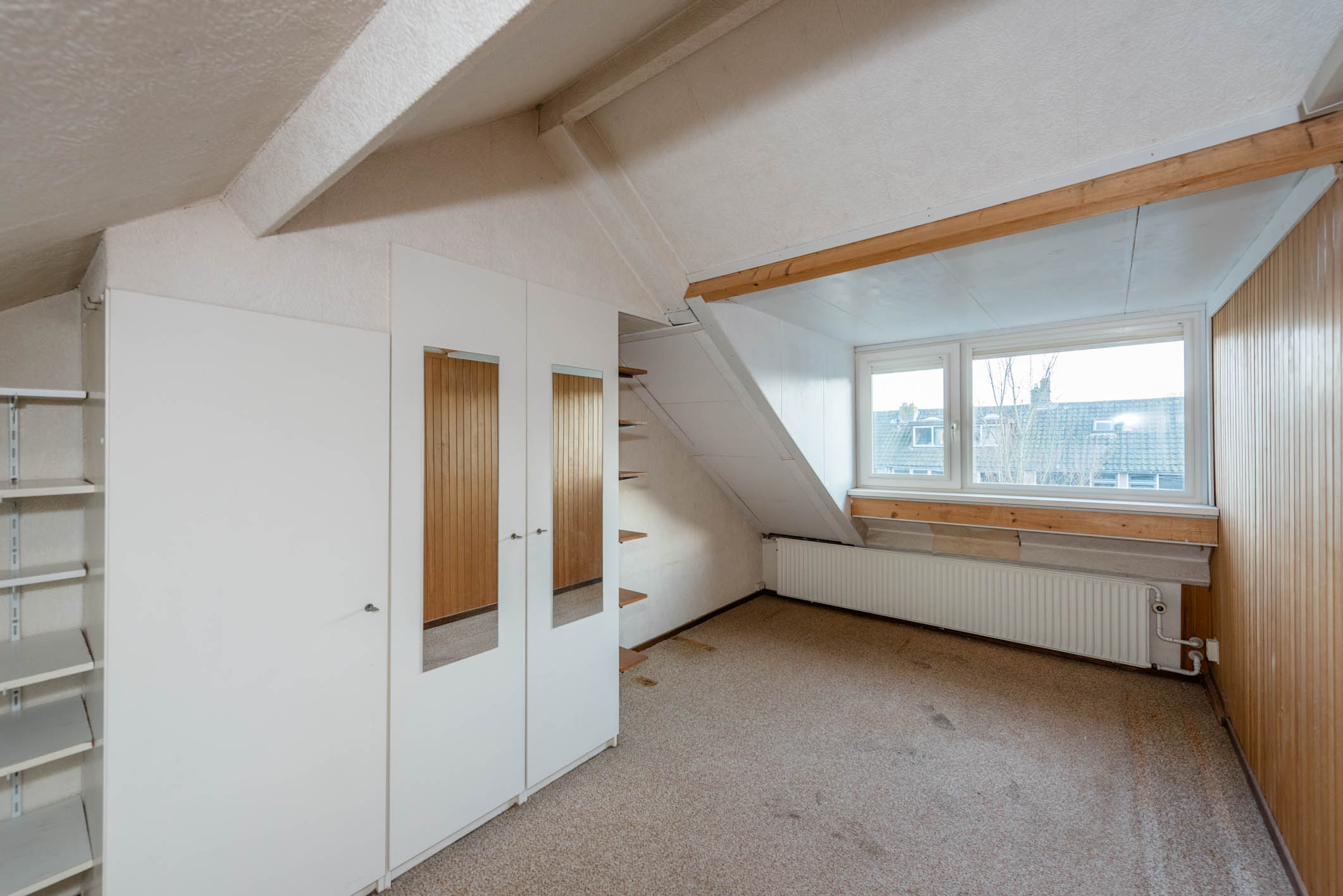 2e etage: grote overloop met dakkapel, grote slaapkamer met dakkapel.