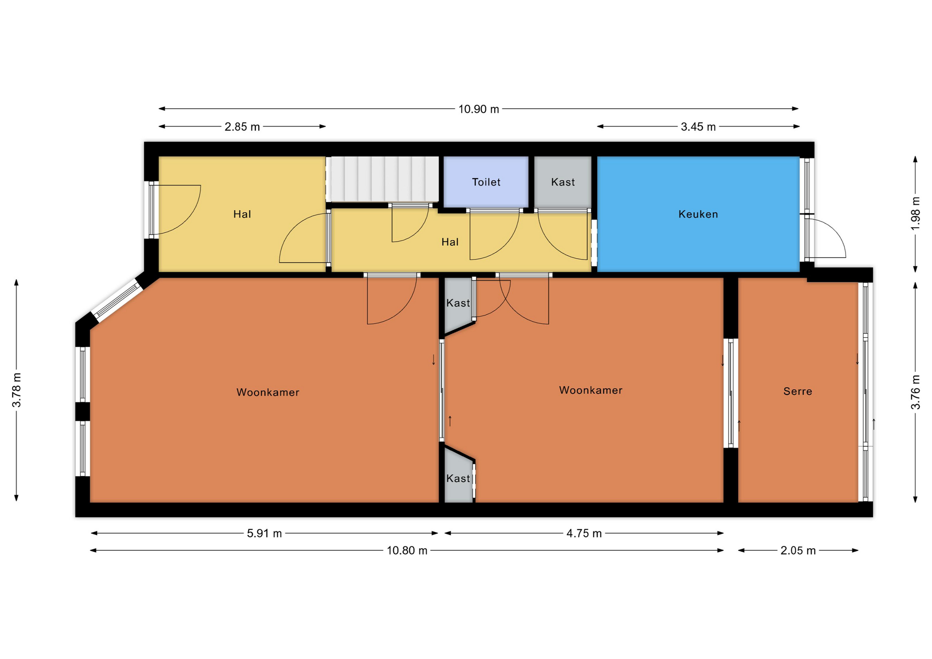 - Voor maatvoering en indeling zie kleuren plattegronden