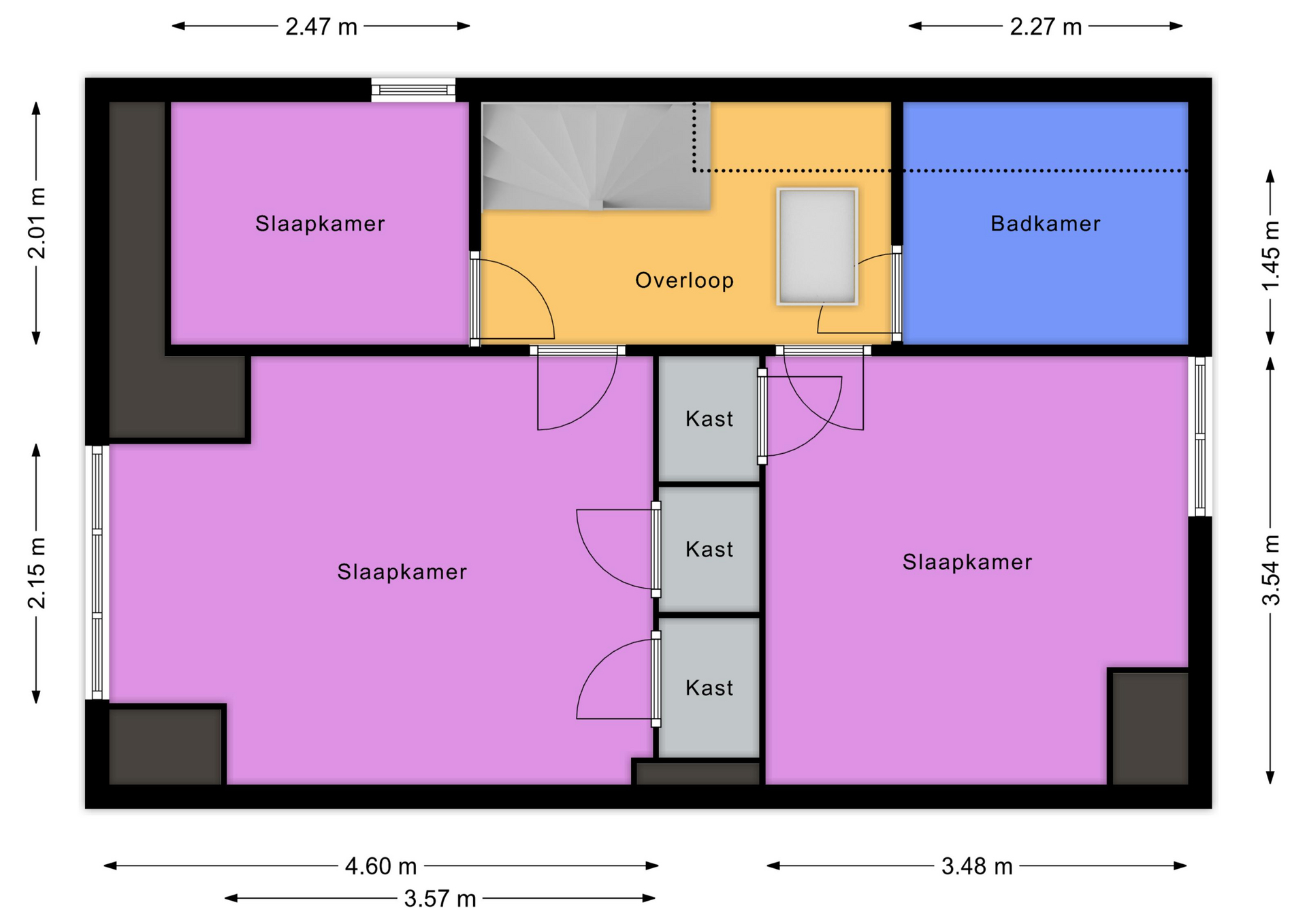 2e etage: overloop, badkamer met inloopdouche en wastafel, 3 slaapkamers