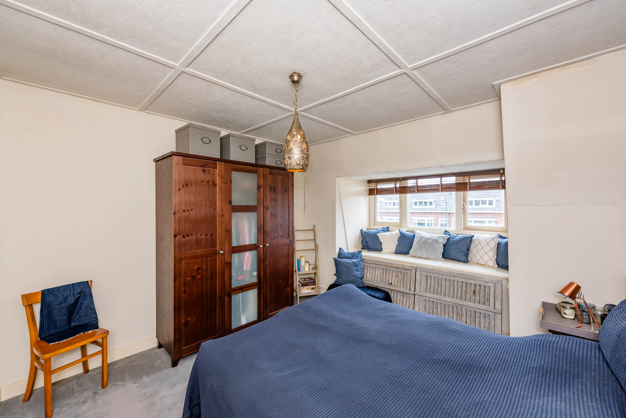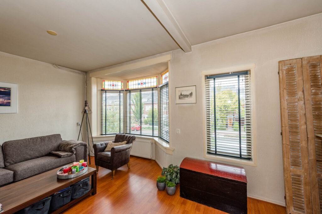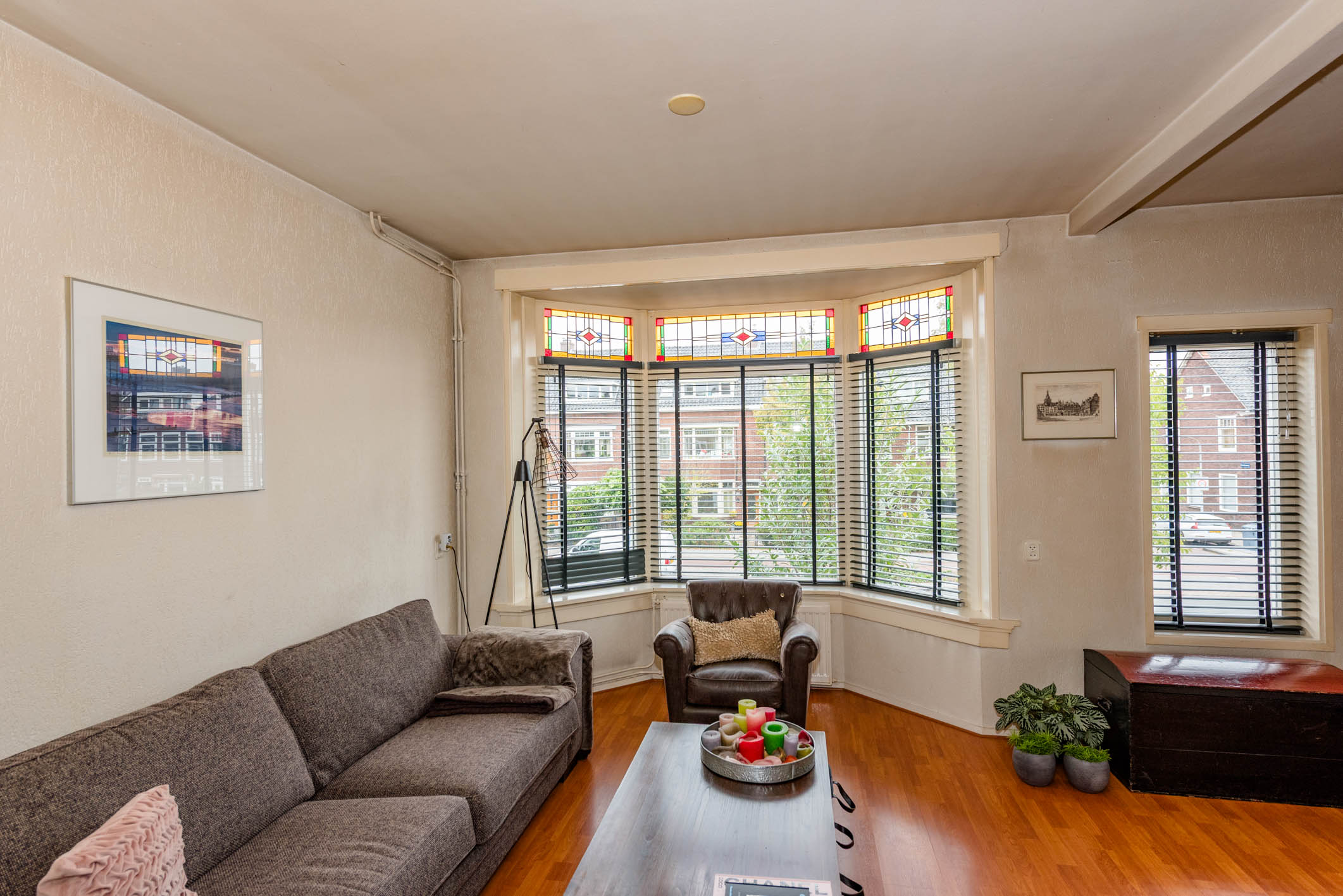 Op een goede locatie gelegen, nette en ruime bovenwoning met een groot terras op het zuid-westen. Goede maatvoering, woonkamer-en-suite, paneeldeuren en glas-in-lood. Bijzonder ruime bergzolder (hoogte 1,70 meter) met diverse mogelijkheden.