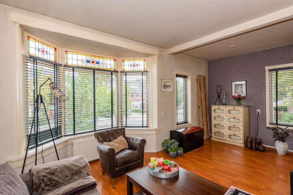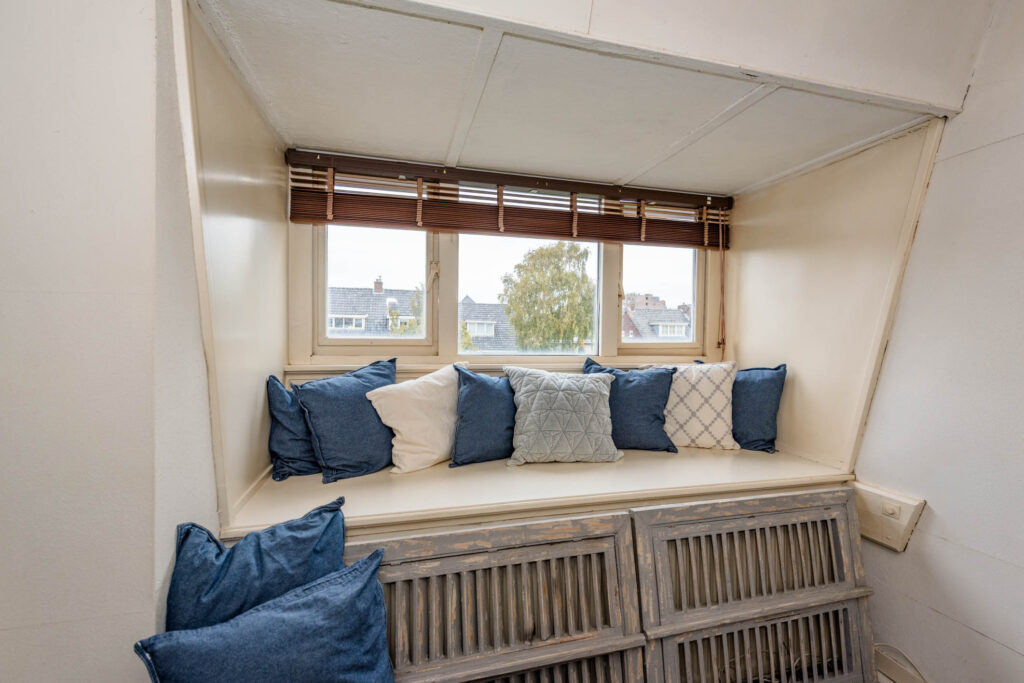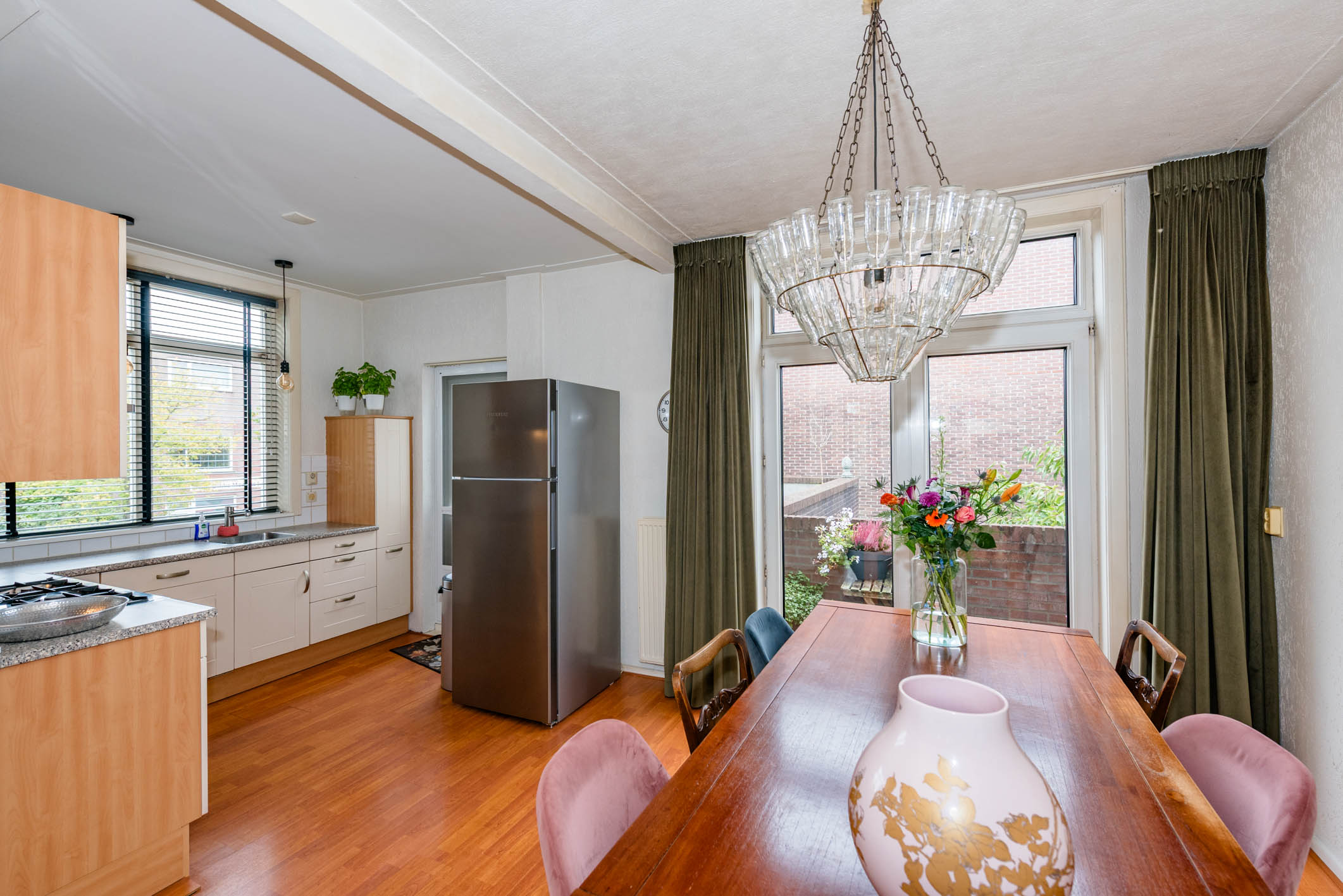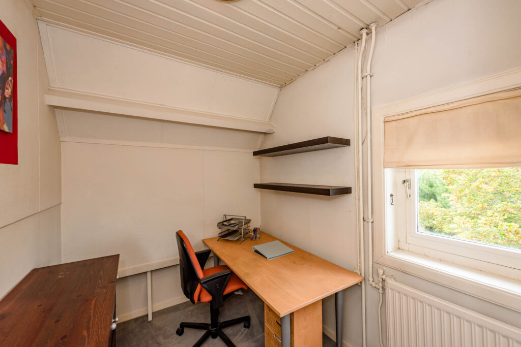 Op een goede locatie gelegen, nette en ruime bovenwoning met een groot terras op het zuid-westen. Goede maatvoering, woonkamer-en-suite, paneeldeuren en glas-in-lood. Bijzonder ruime bergzolder (hoogte 1,70 meter) met diverse mogelijkheden.