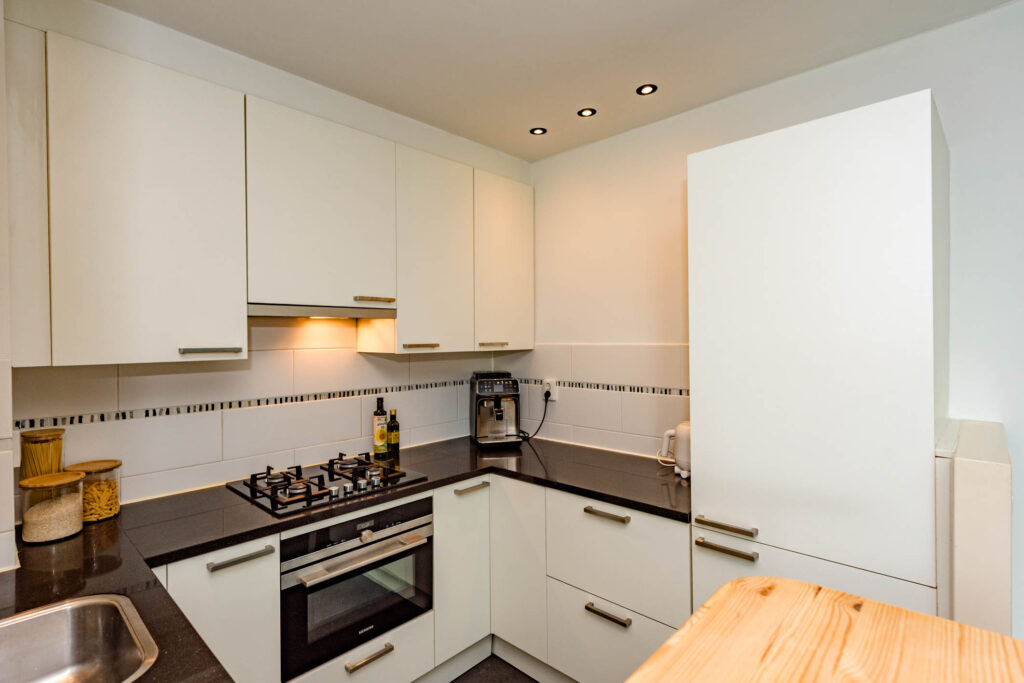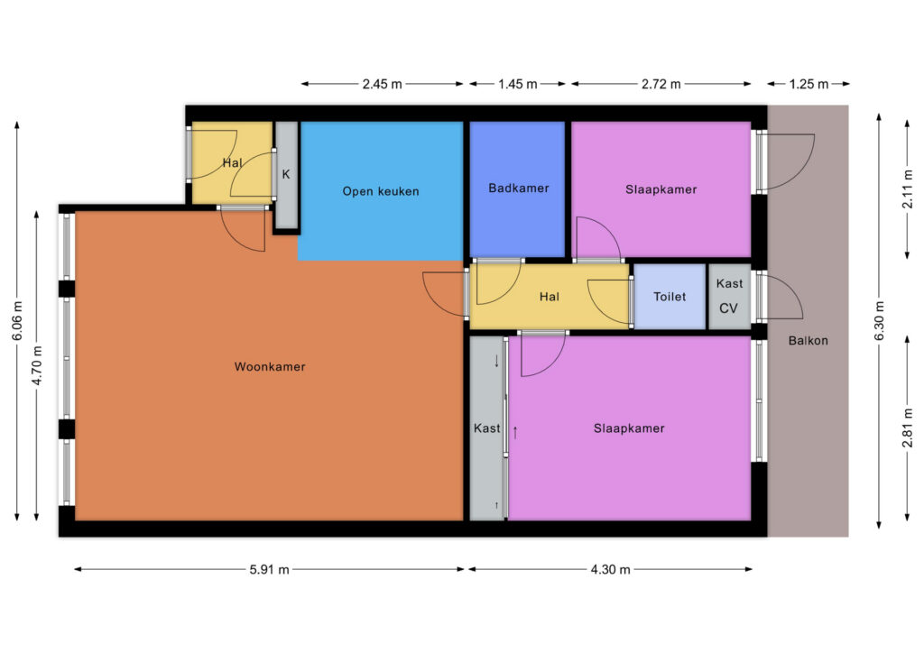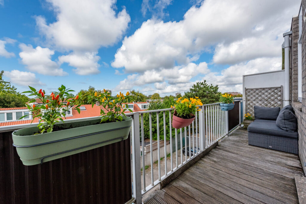 3e etage: entree, hal, lichte woonkamer met moderne open keuken, toilet, badkamer met inloopdouche en wastafel, 2 slaapkamers aan de achterzijde, fijn zonnig balkon op het westen.