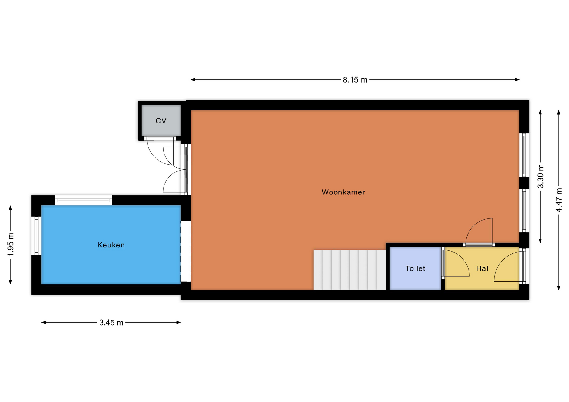 Parterre: entree, hal, modern toilet, woonkamer met plafond van 3 mater hoog en openslaande deuren naar de tuin op het zuiden, moderne open keuken