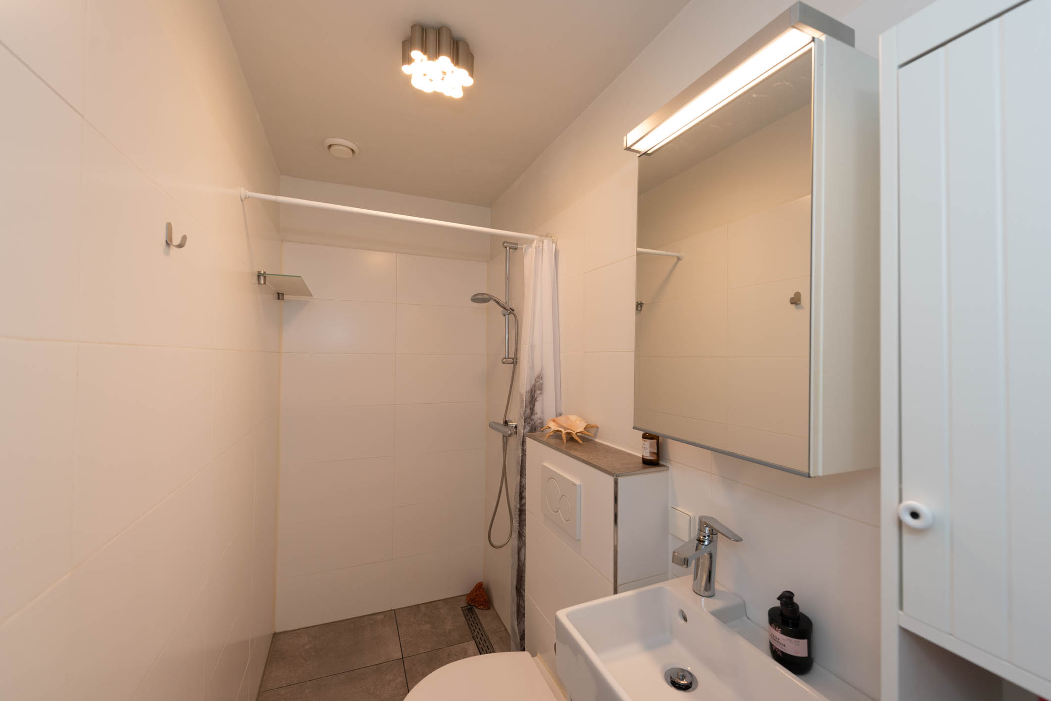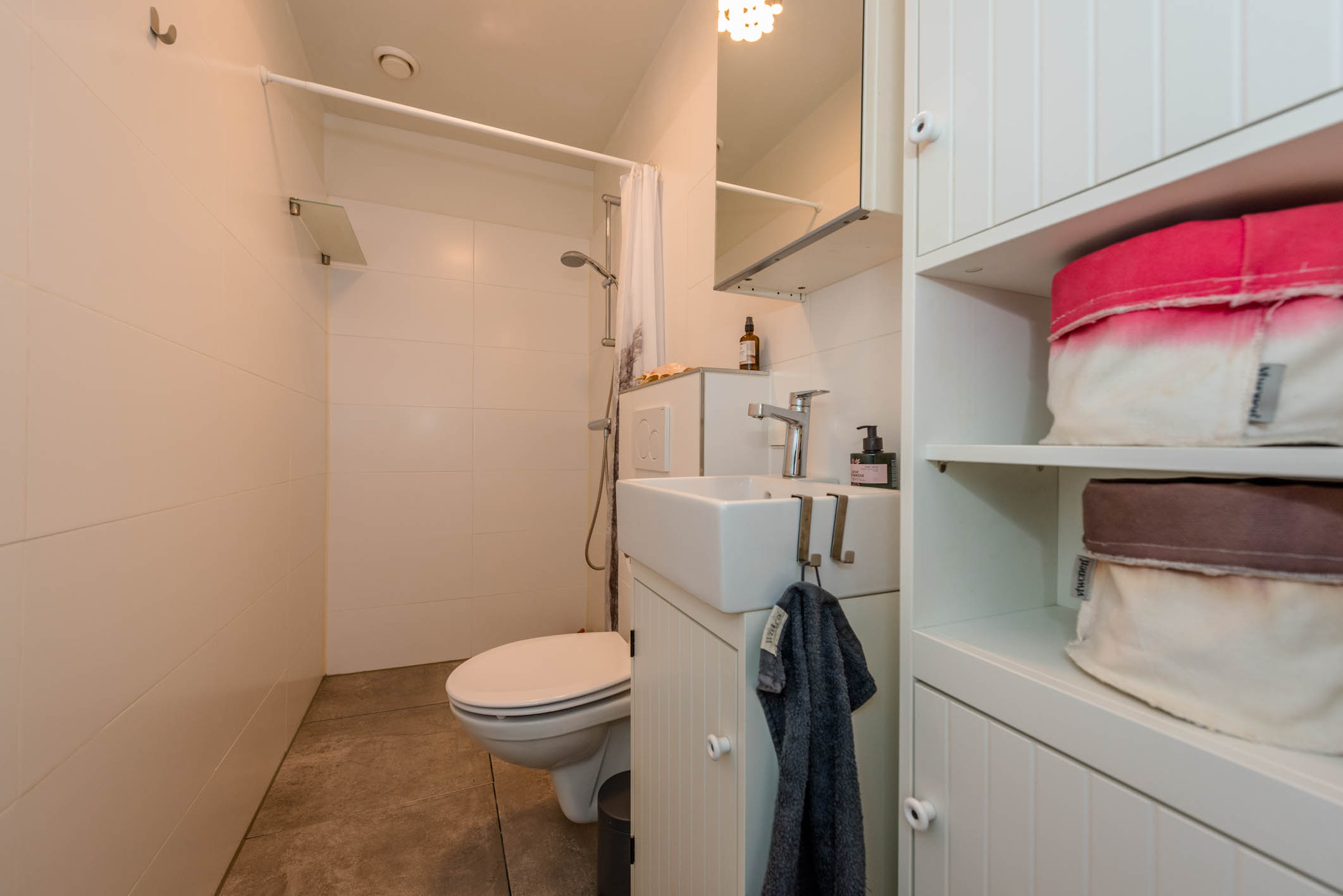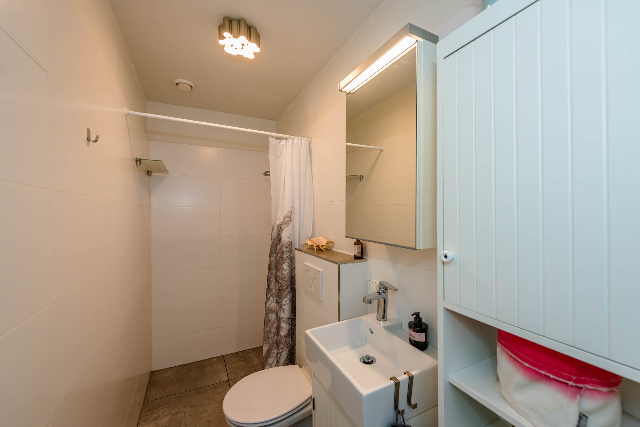 Parterre: entree vanaf de straat, tochtportaal, hal, slaapkamer, badkamer met inloopdouche, wastafel en toilet, woonkamer met open keuken en grote schuifpui naar het heerlijke terras op het zuid-westen.