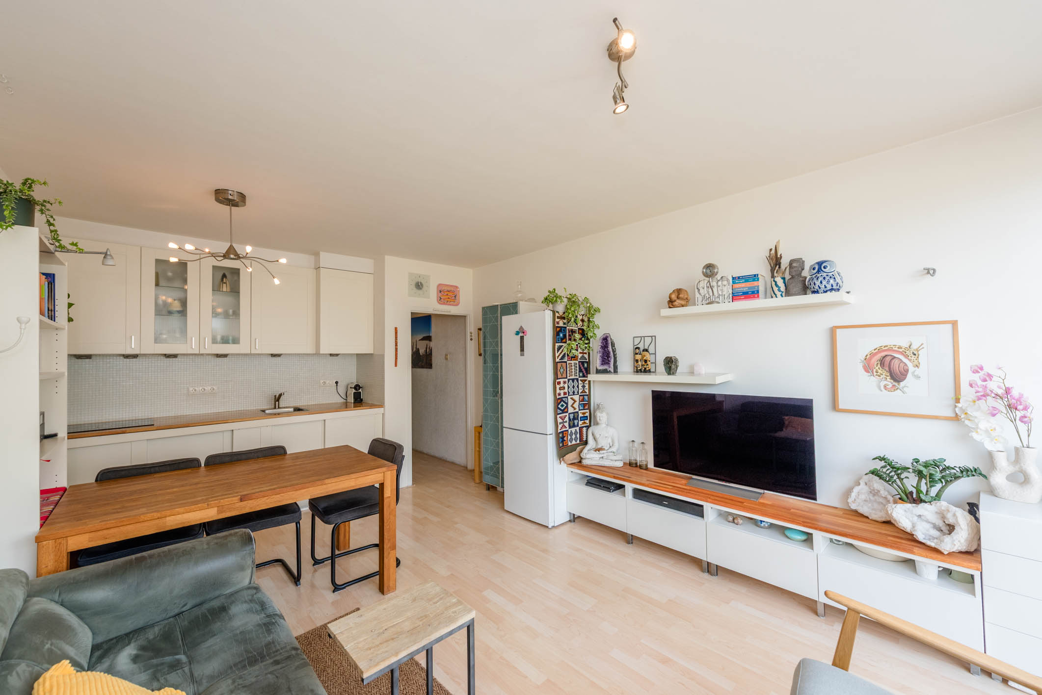 - Lichte woonkamer met open keuken, slaapkamer en badkamer