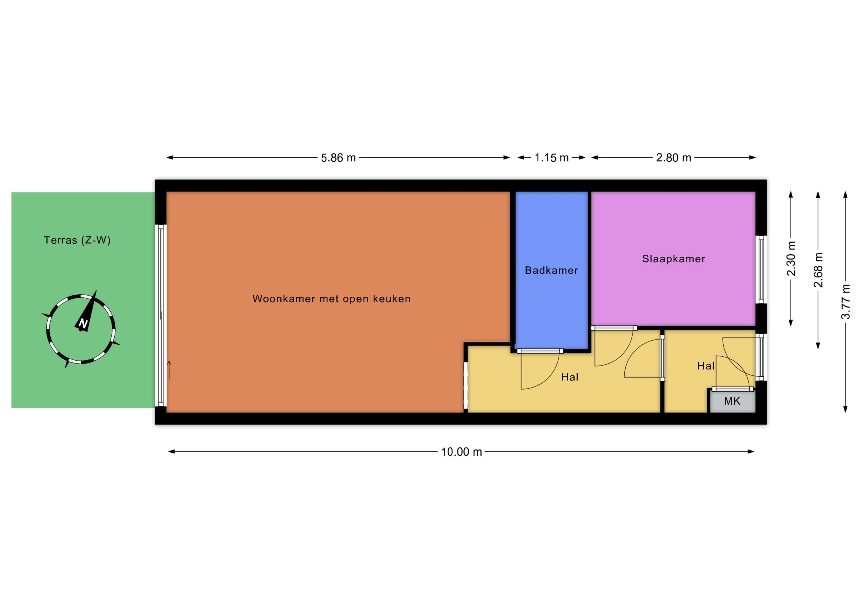 - Woonoppervlakte ca 38 m², terras ca 9 m²